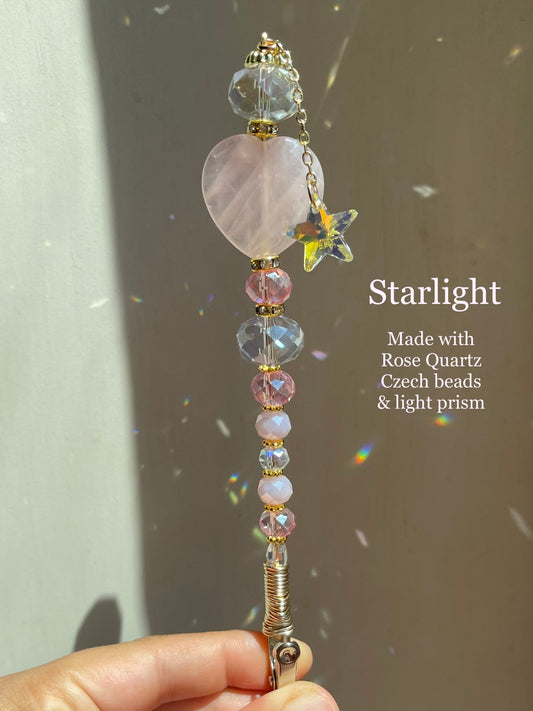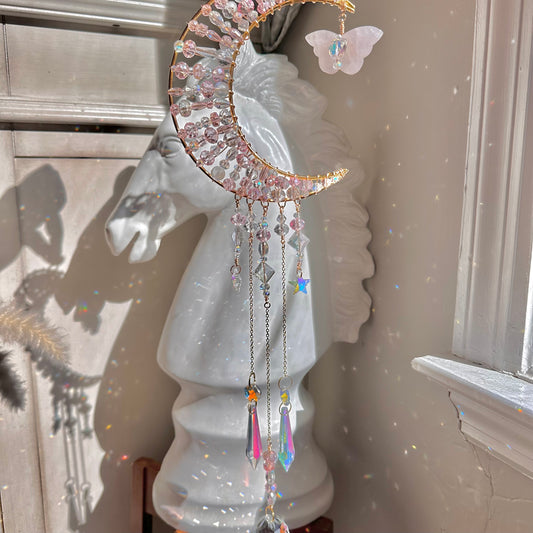 Crescent Moon Pink Crystal Rose Quartz Suncatcher | Light catcher | Rainbow Maker