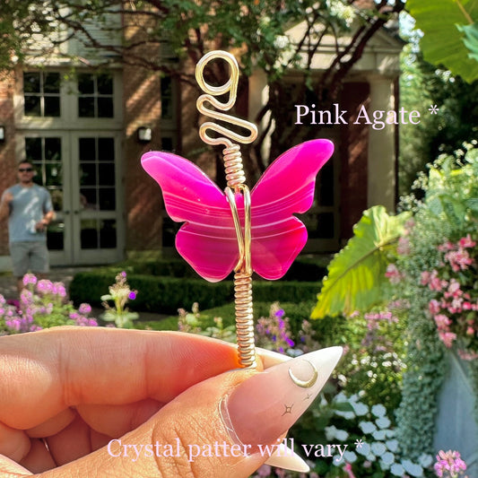 Rose Quartz Butterfly Pink Wire Wrap Smoke ring cigarette holder