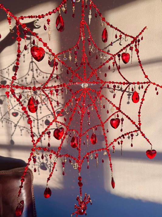 Botanical Heart spider web Suncatcher Floral Crystal Heart Spring Window Prism Handmade Botanical