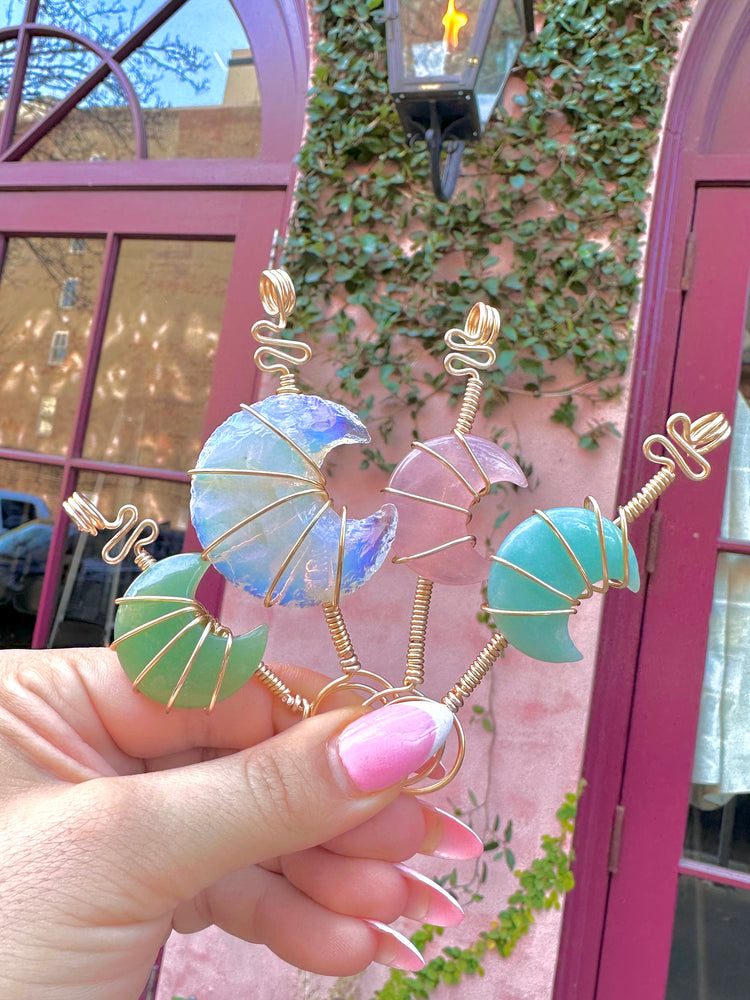 Crystal moon cigarette holder ring Long Nail Protector | Rose Quartz Aventurine Opalite Amazonite | Crystal Smoke ring | gift for smokers |