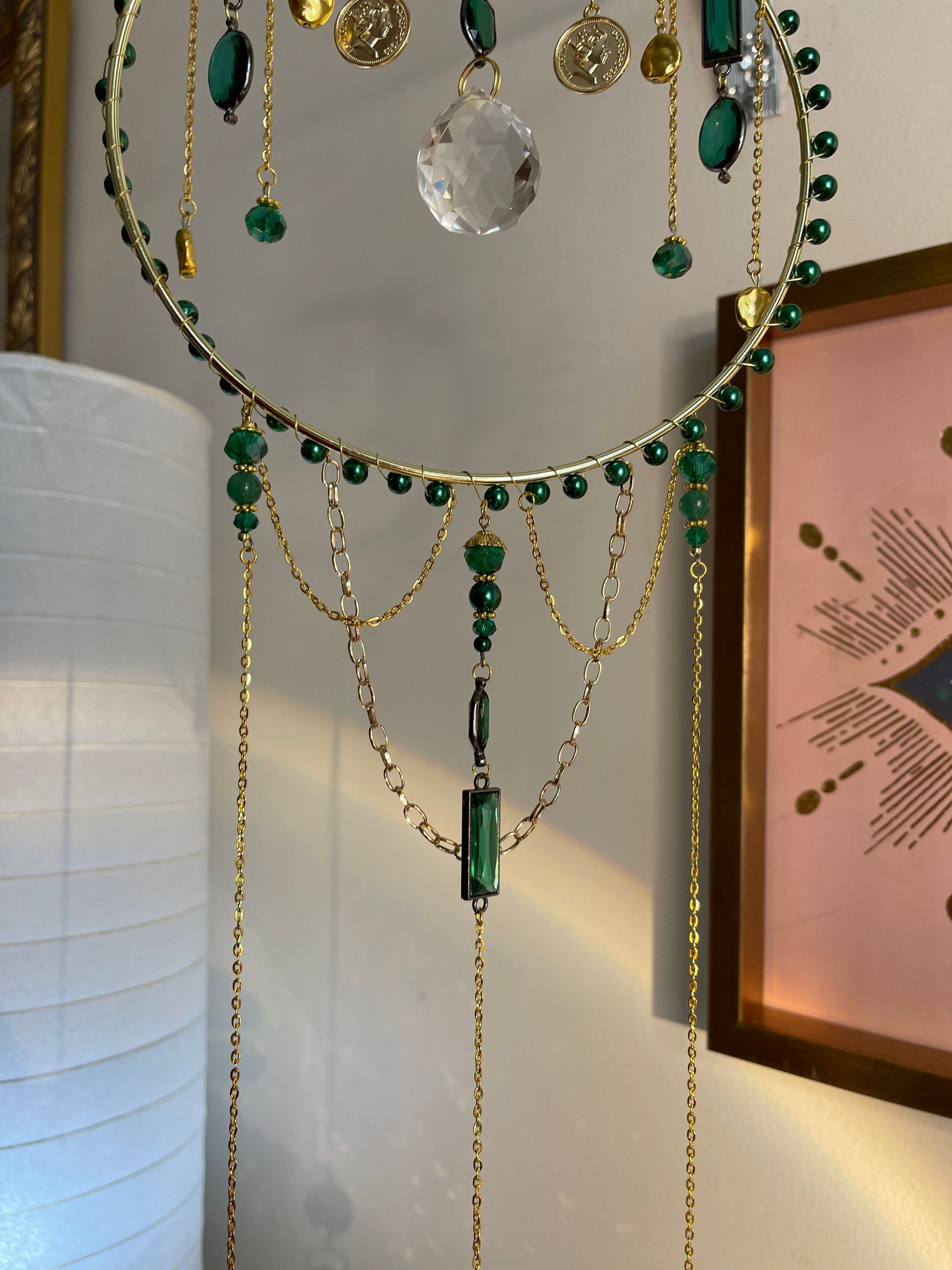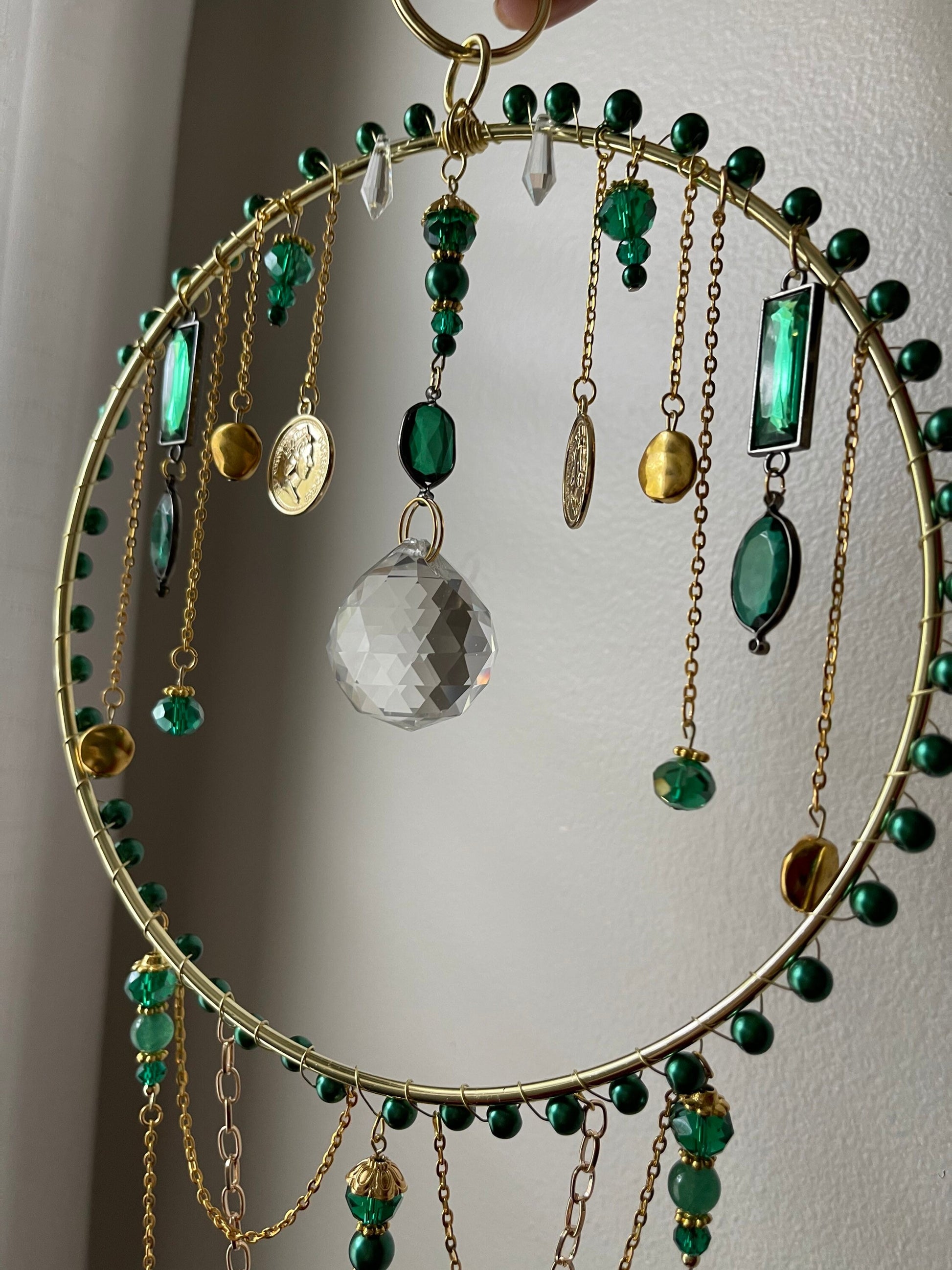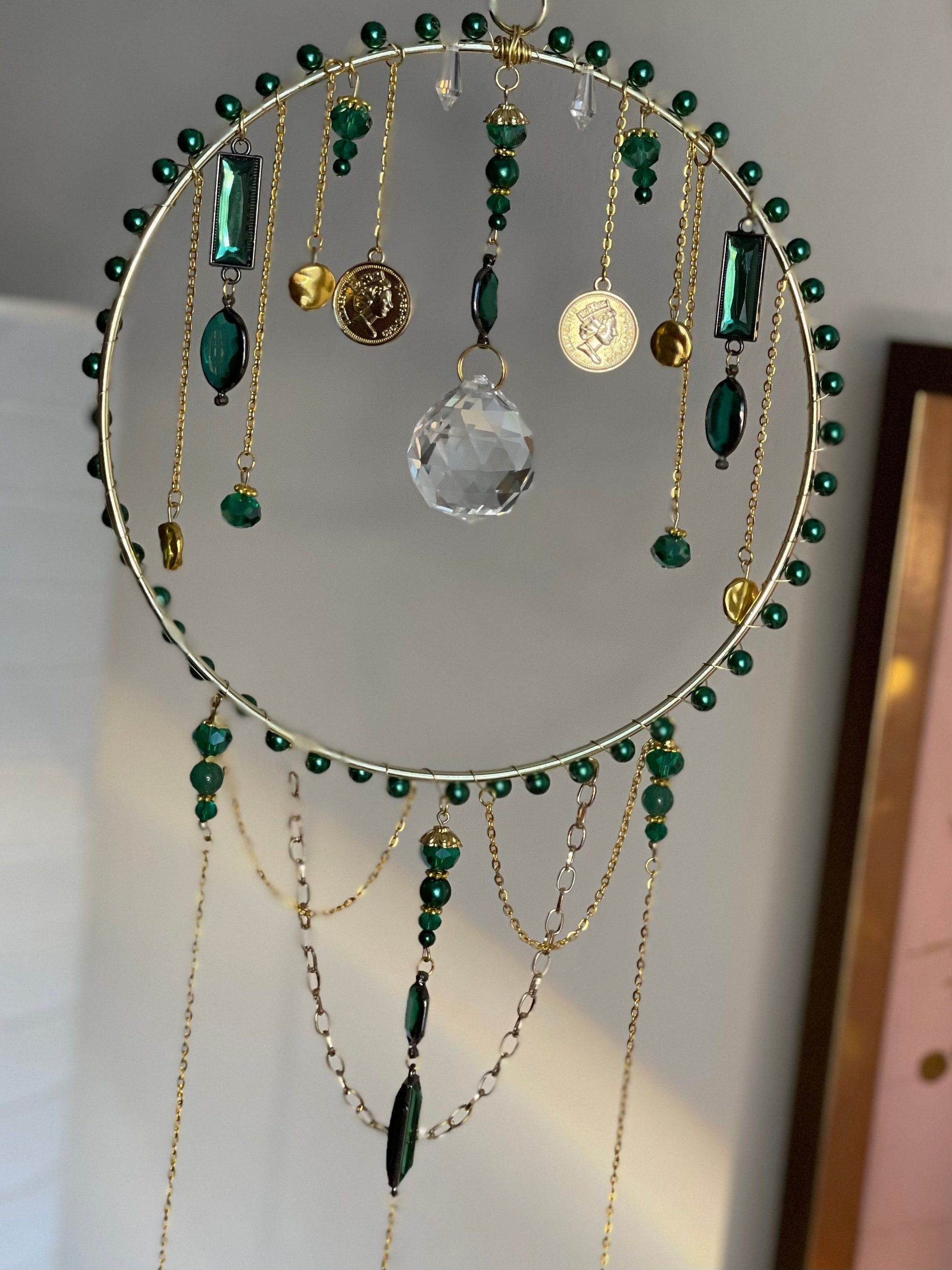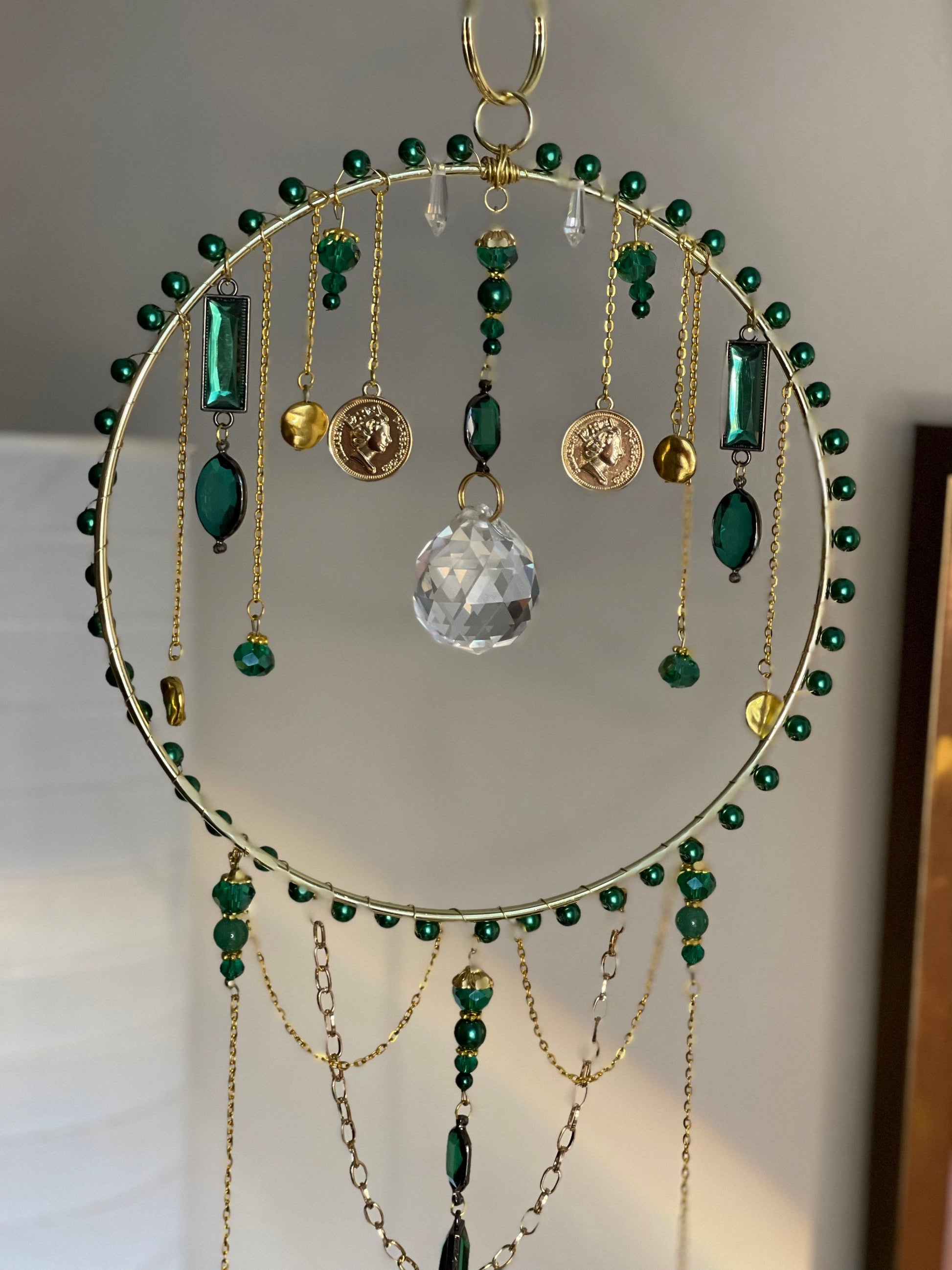 *This emerald green suncatcher handmade one of a kind creation and design, originally published by Whitemagickdivine by Evelyn Garcia Dec 16, 2021 copyright protected ©️