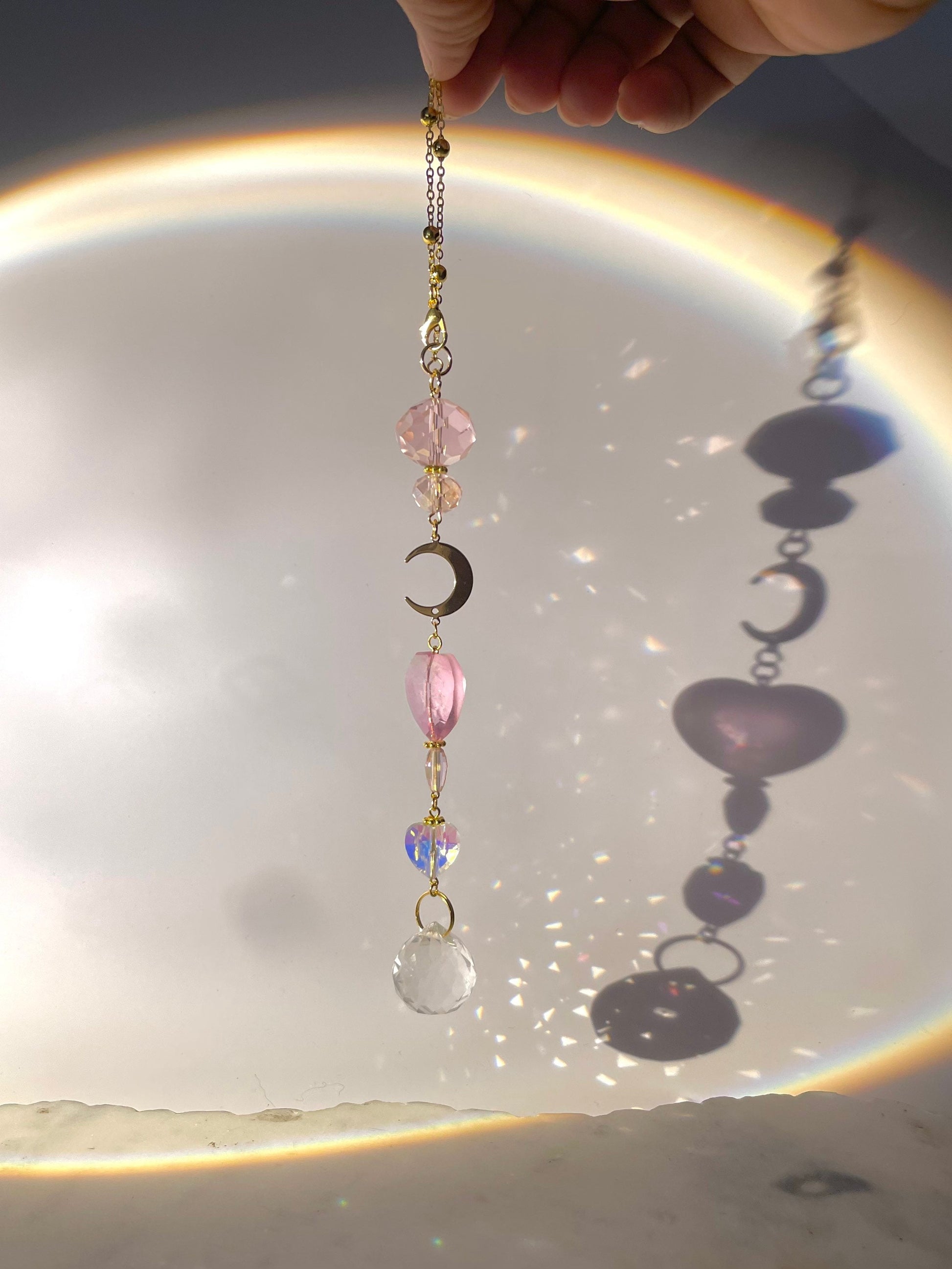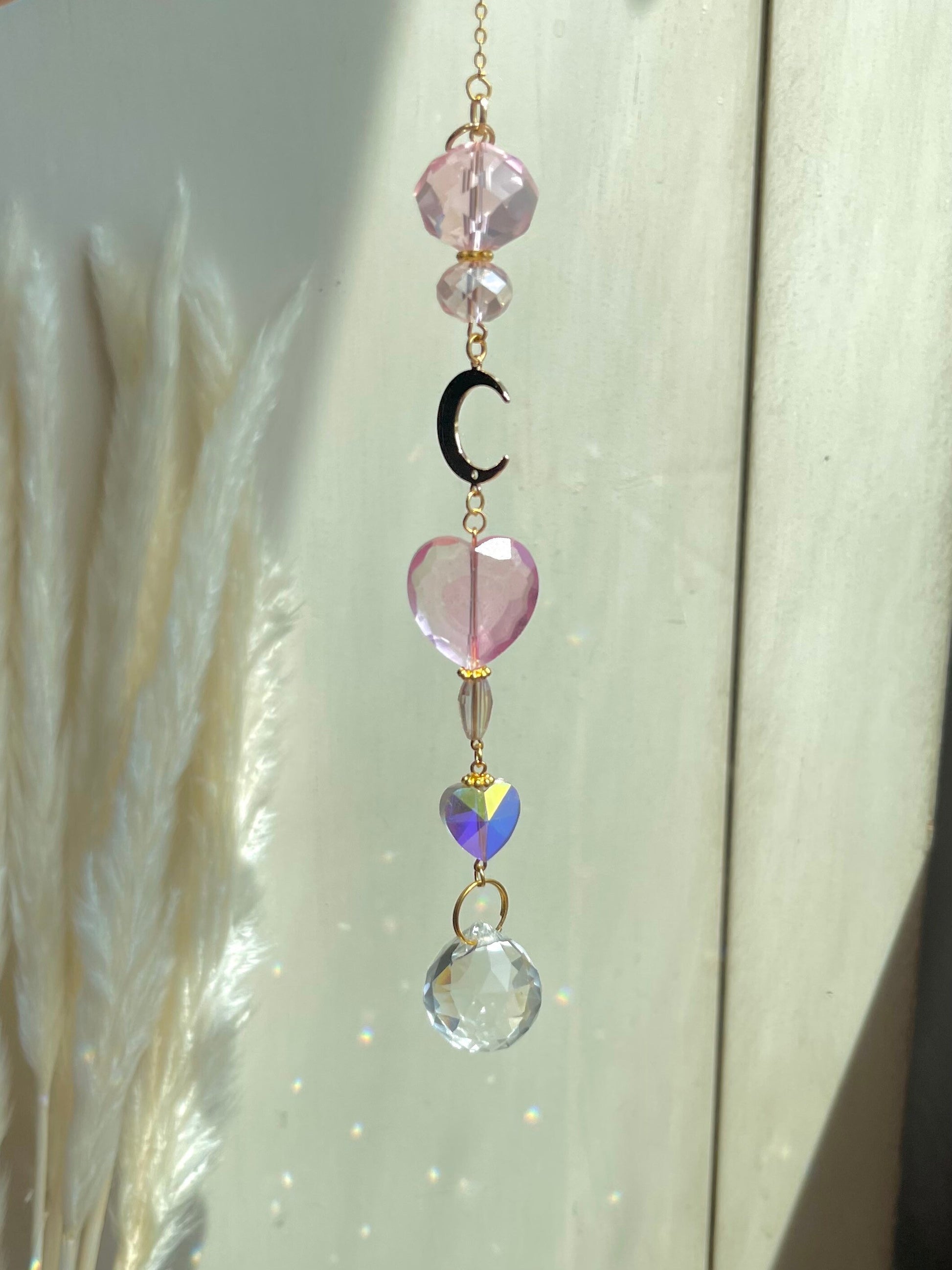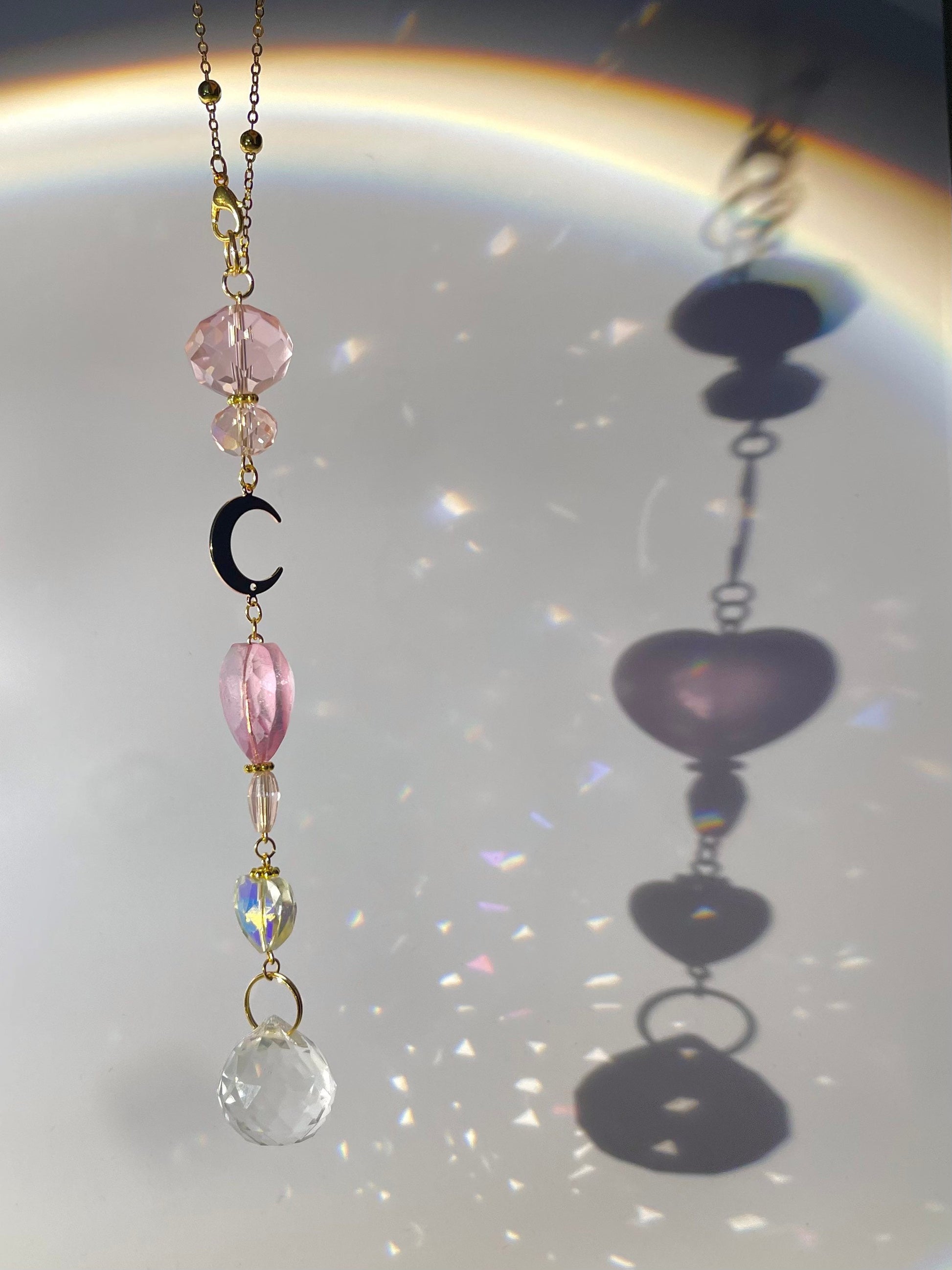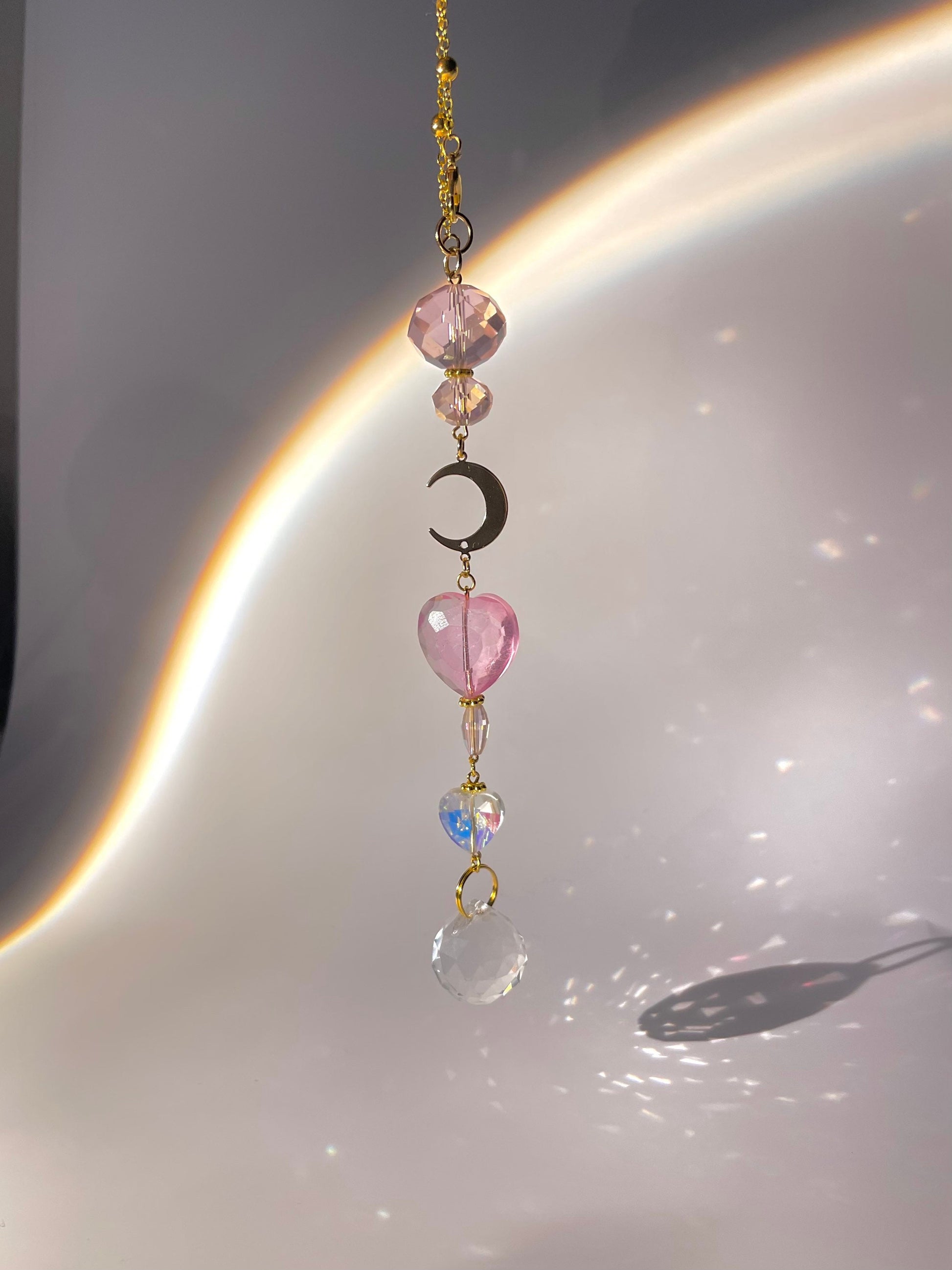 Experience the beauty of our Crystal Moon Heart Car Mirror Charm Suncatcher and transform every drive into a captivating journey. Choose your favorite color and let the charm cast its spell on you and your vehicle."