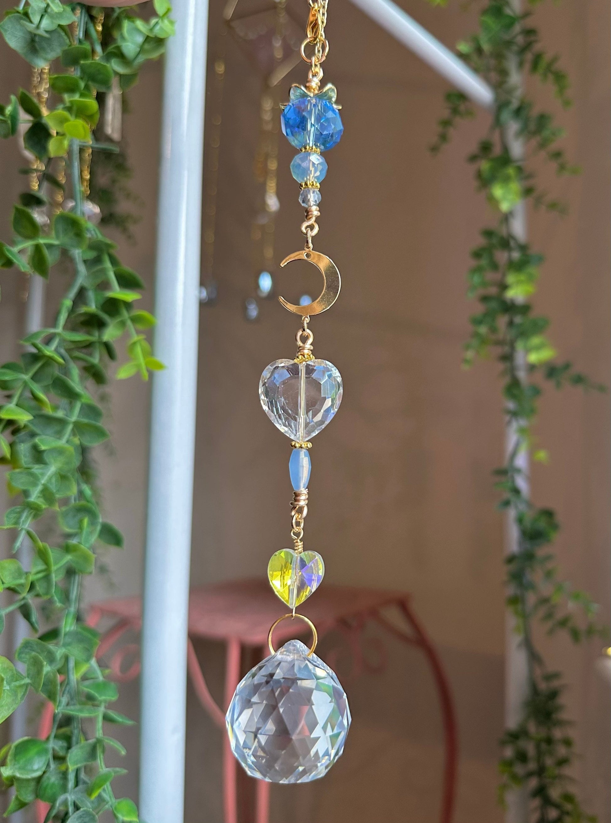 *This Crystal moon heart car mirror suncatchers are handmade one of a kind creation, originally published by white magick divine by Evelyn Garcia Lirette in 2022 - copyright protected ©️