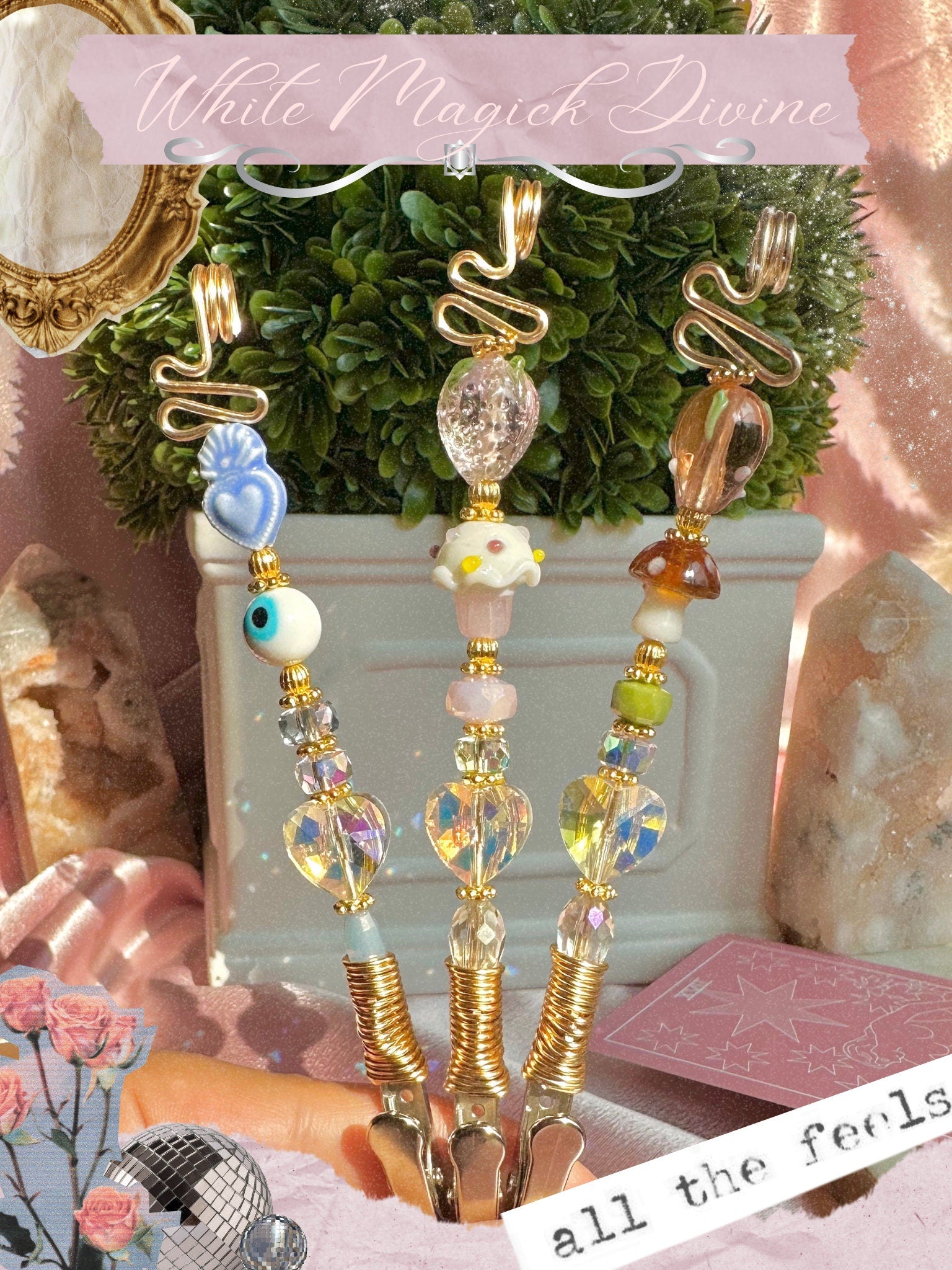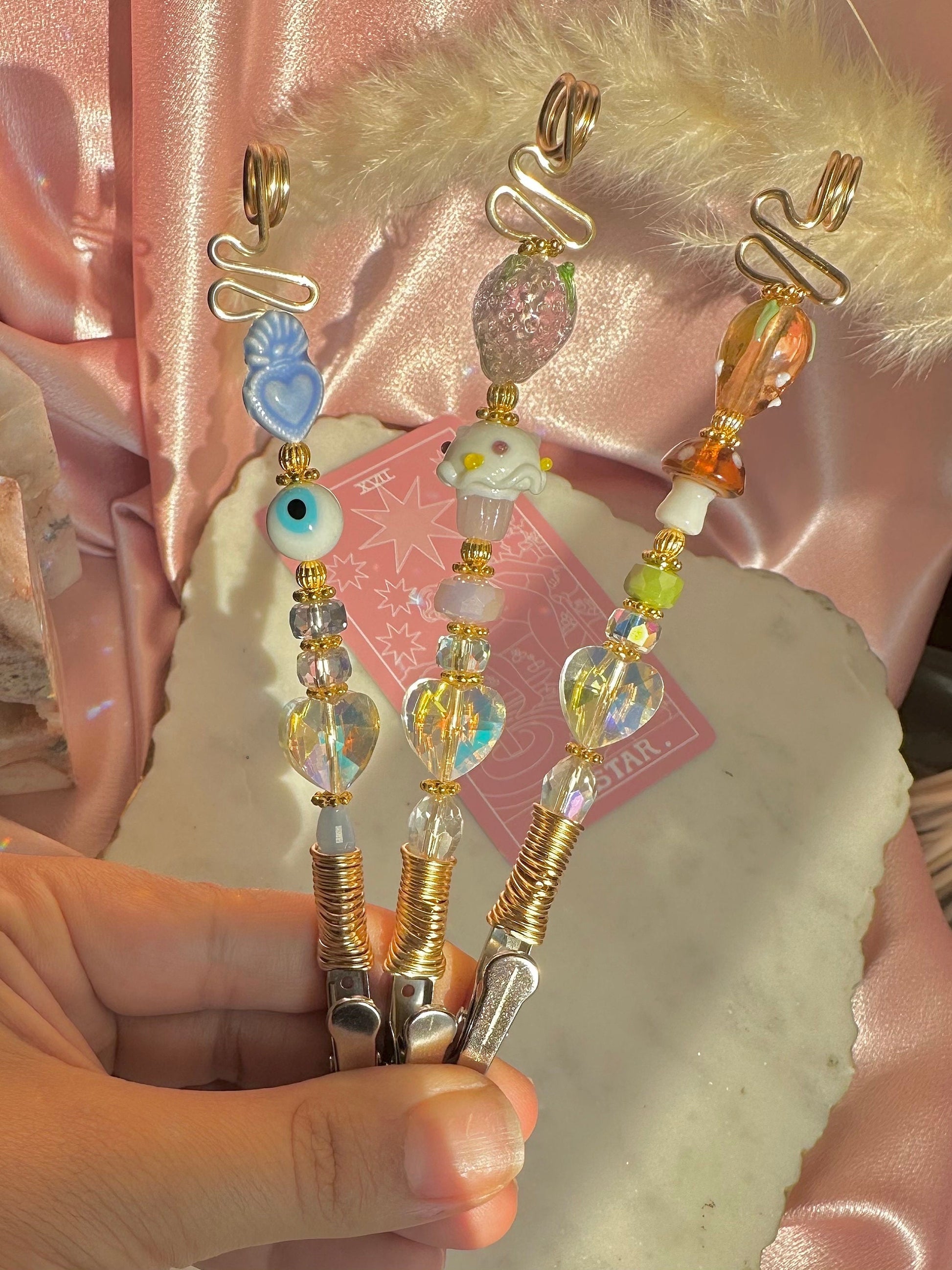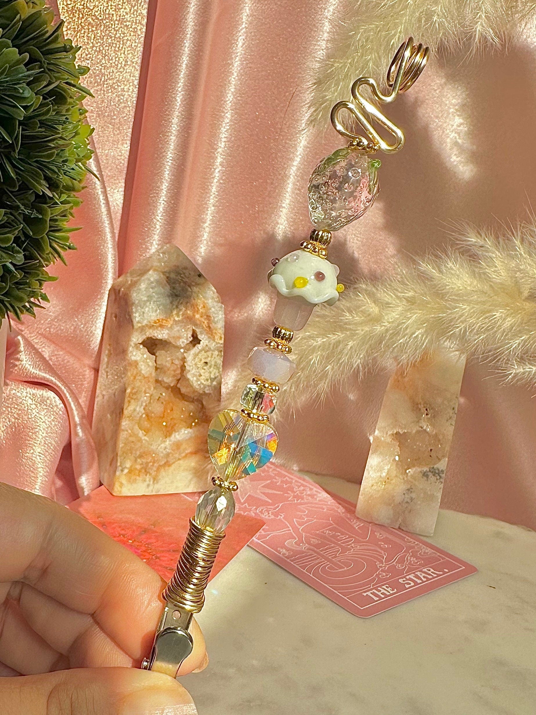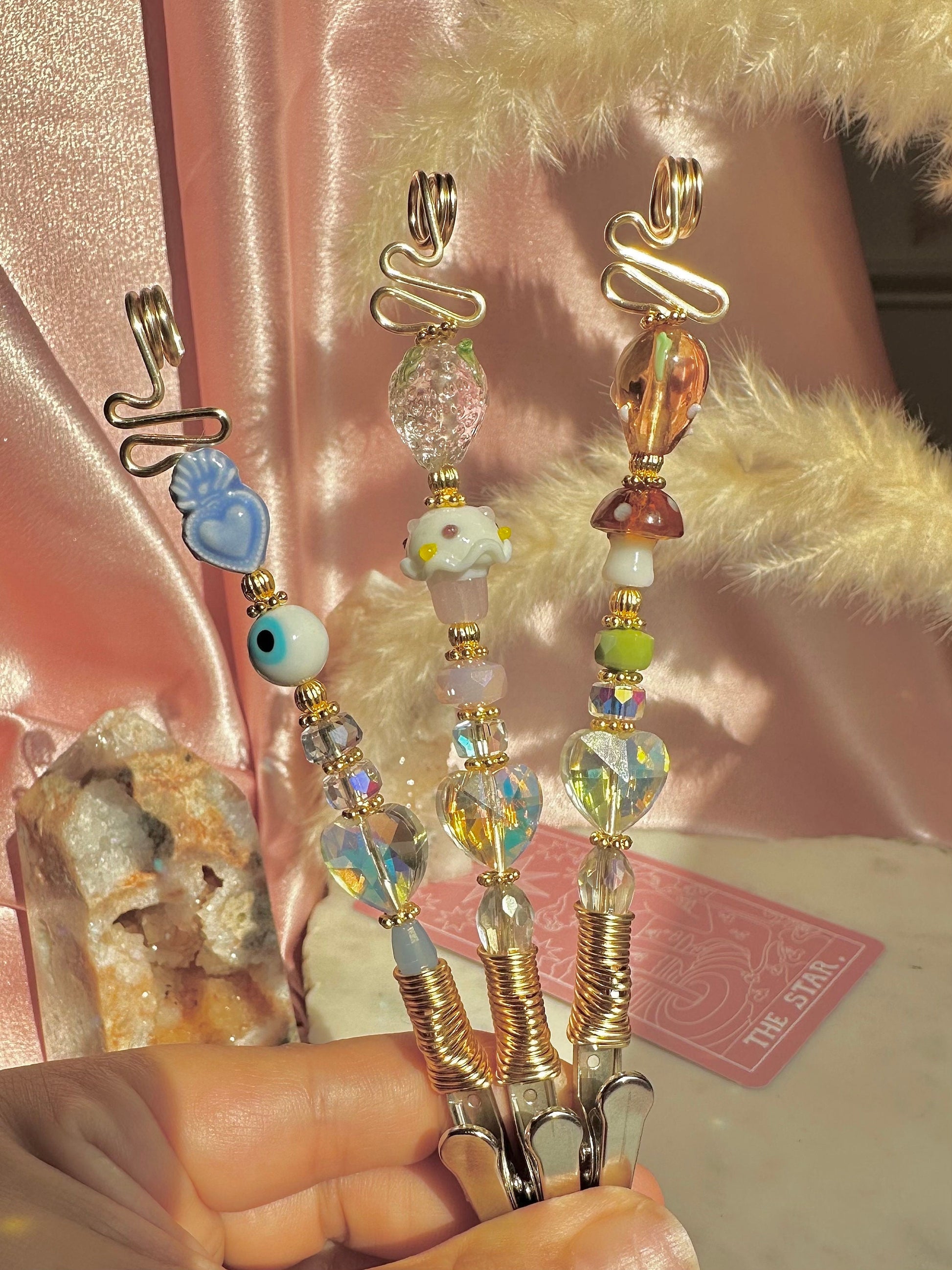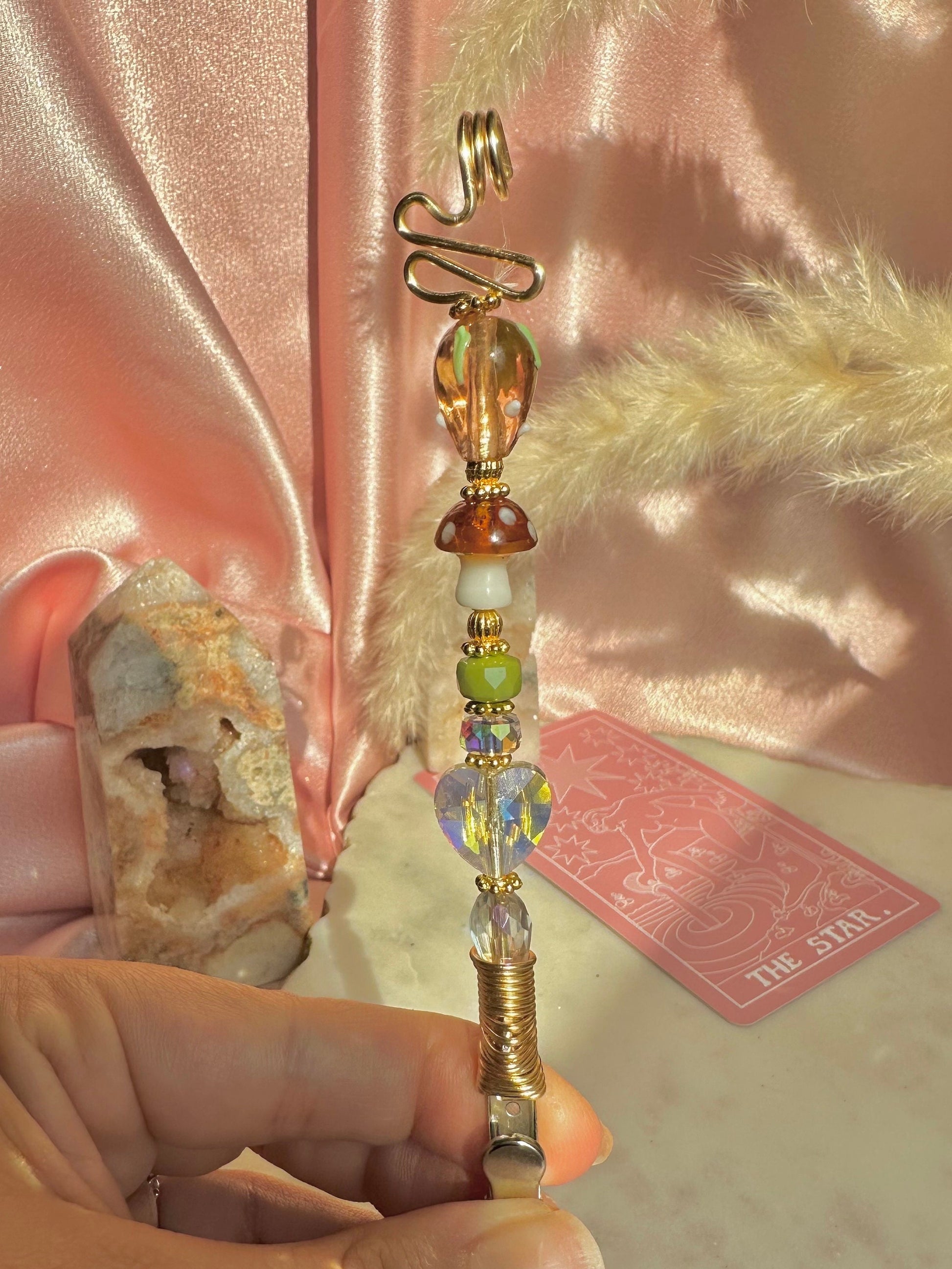 Materials: Copper wire,Czech beads,faceted beads,Smoking tools,Strawberry,Mushroom,charms,heart charms,Rainbow maker,light catcher,Evil eye,Cupcake bead,Long nails saver