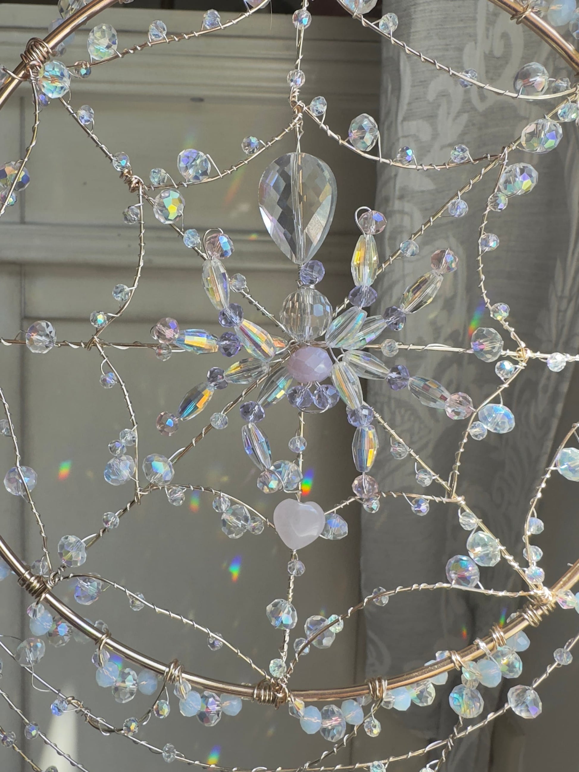 Hang this spider suncatcher near a window or in any well-lit area, and watch as it catches the sunlight, casting a mesmerizing dance of rainbows across your space. Its unique design and thoughtful craftsmanship make it a perfect gift for yourself or a loved one.