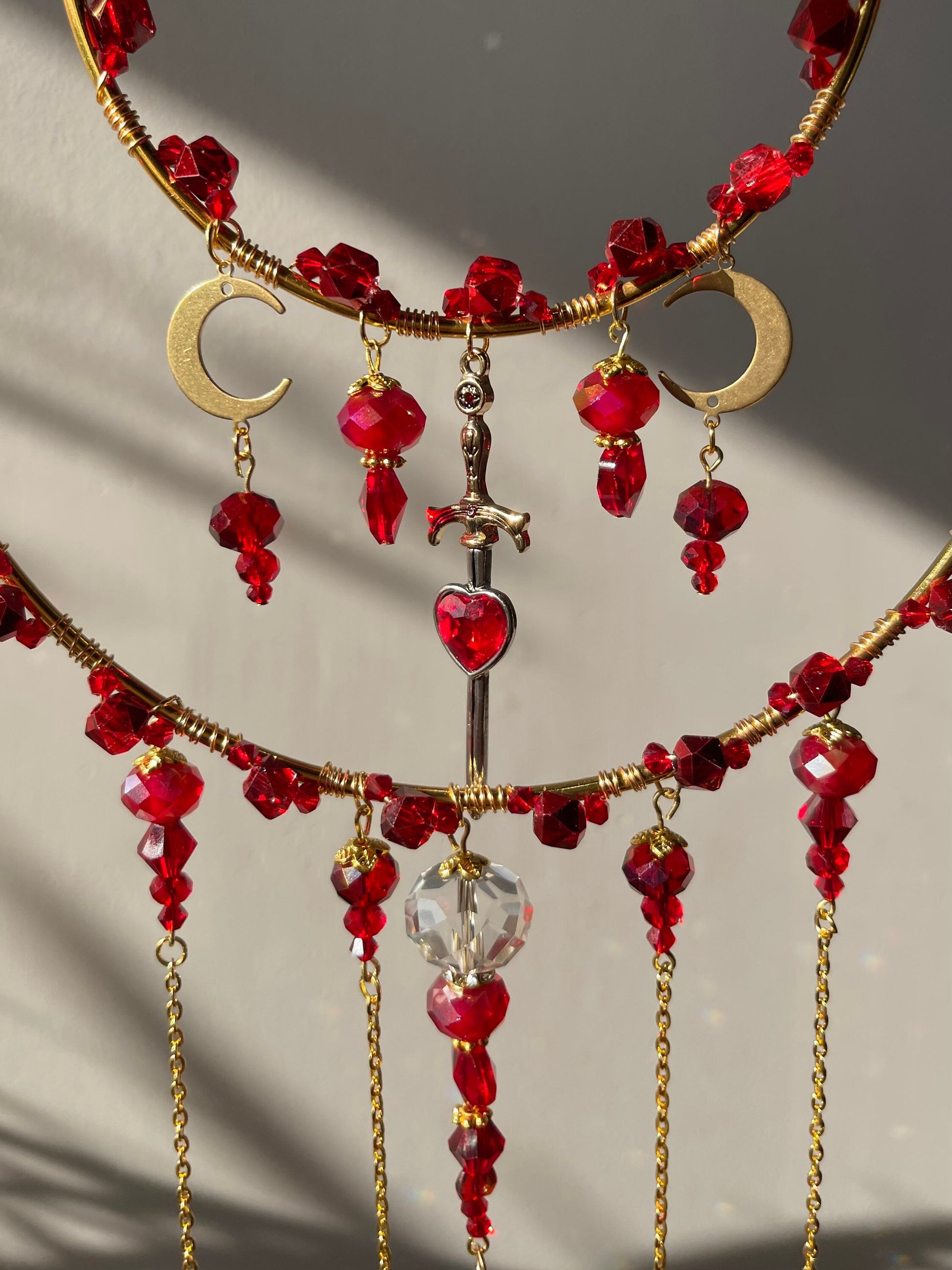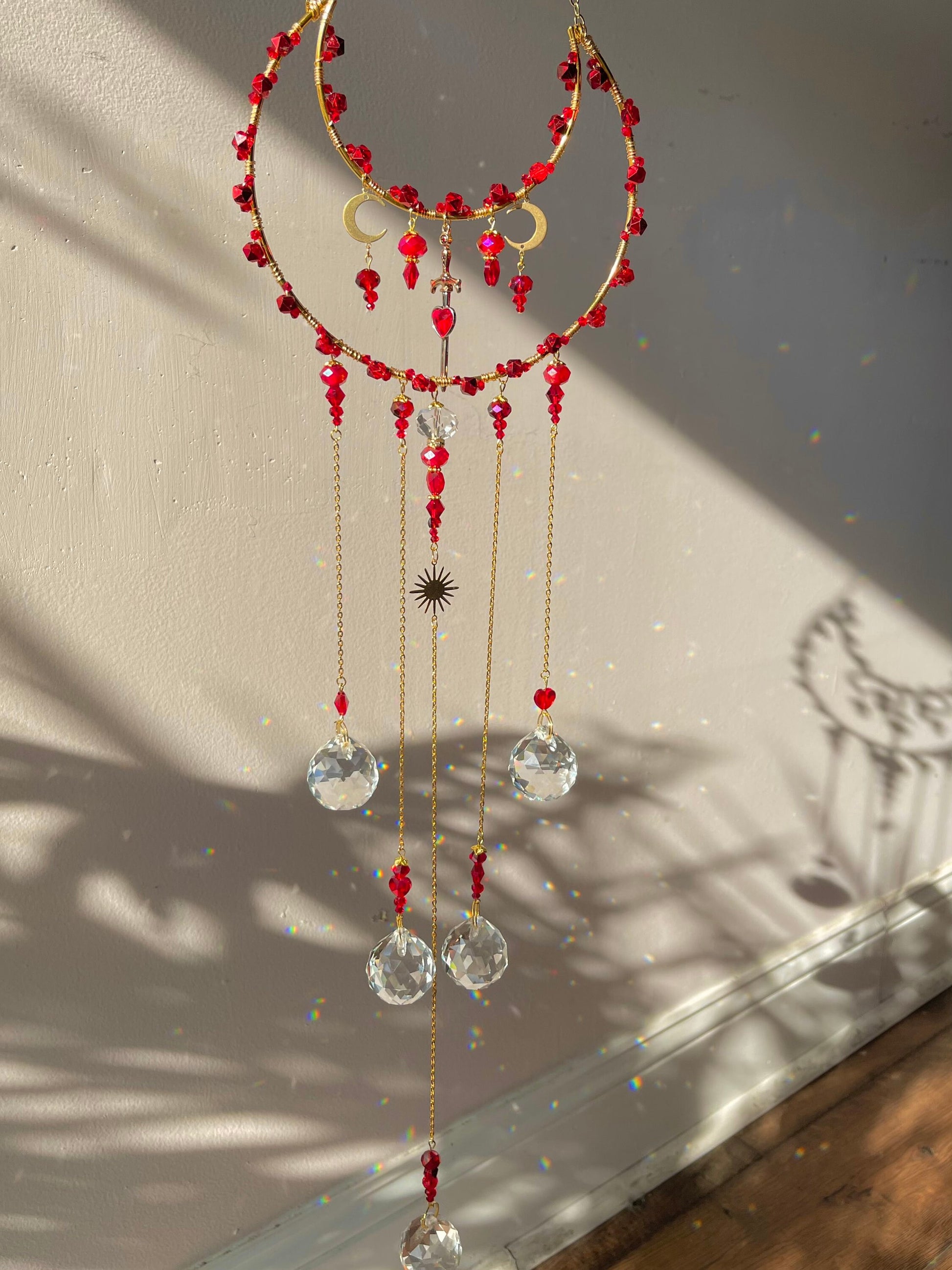 Queen of Swords Ruby Red Crystal Sun Catcher
