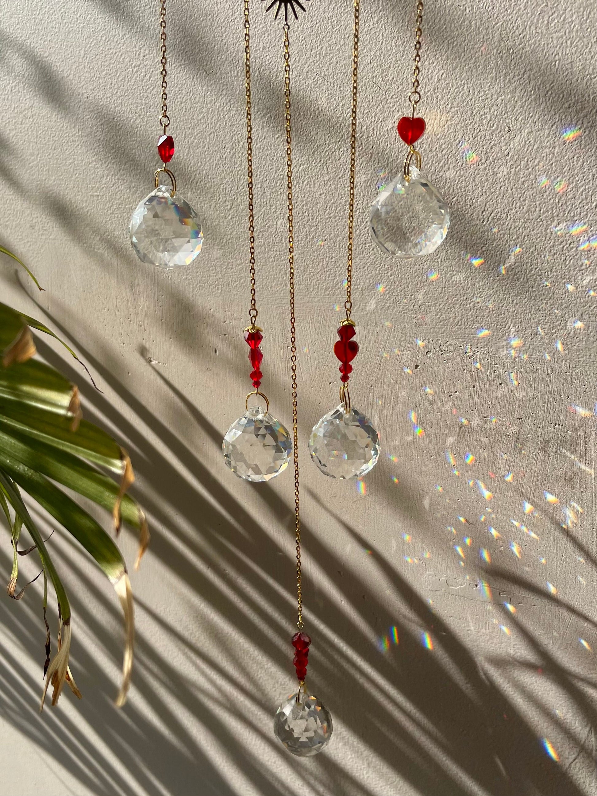 Materials: home decor,Ruby red decor,red crystals,light prism